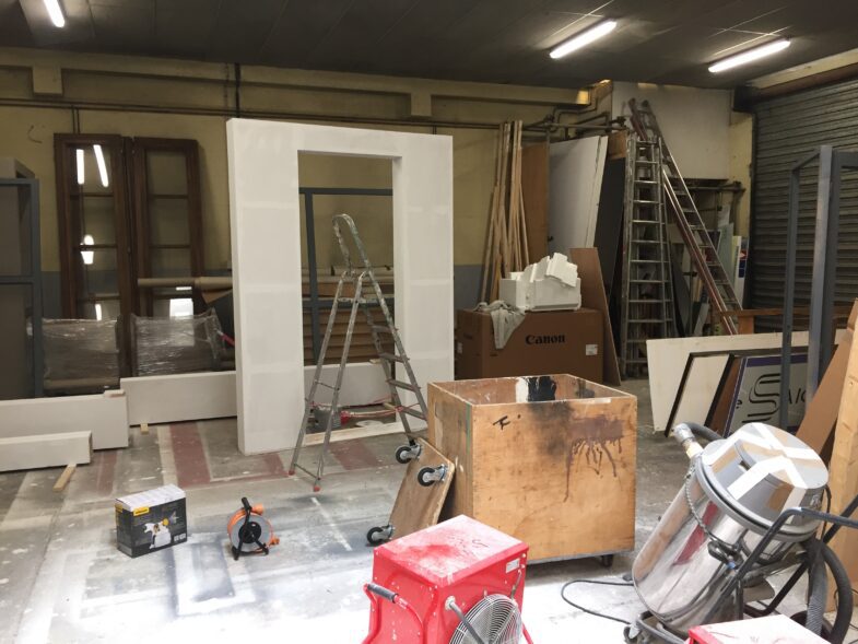 Agencement et décoration. Conception mobilier, équipements, accessoires de rangement et fresque murale.